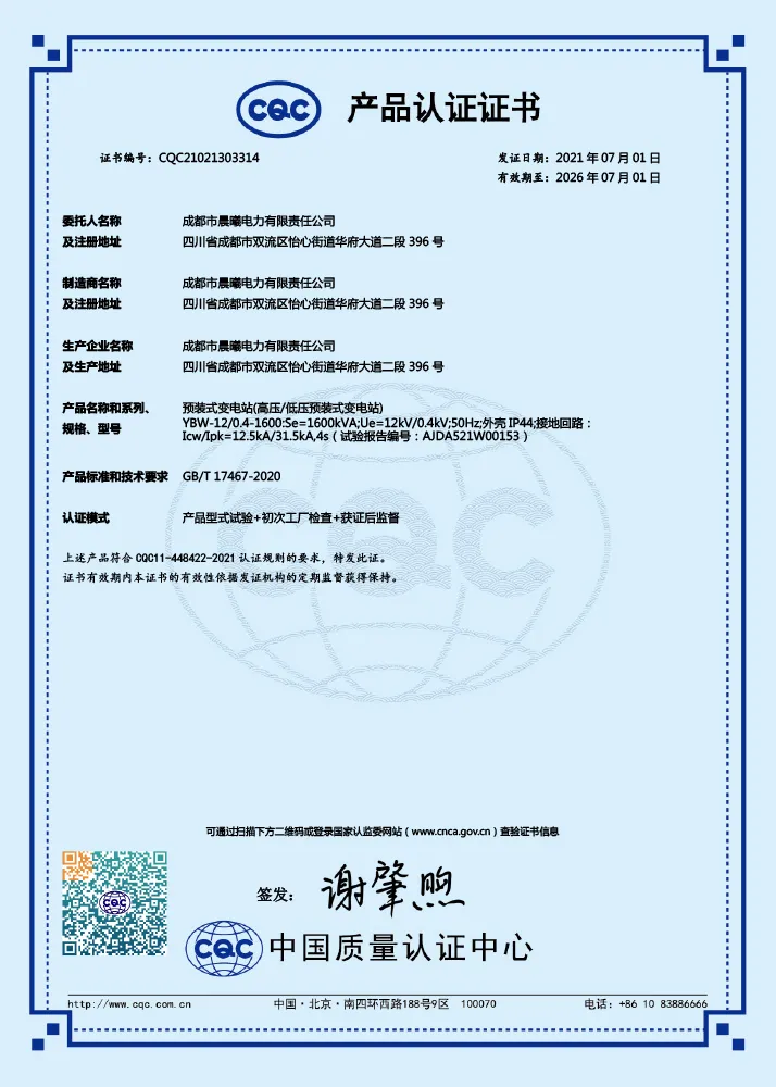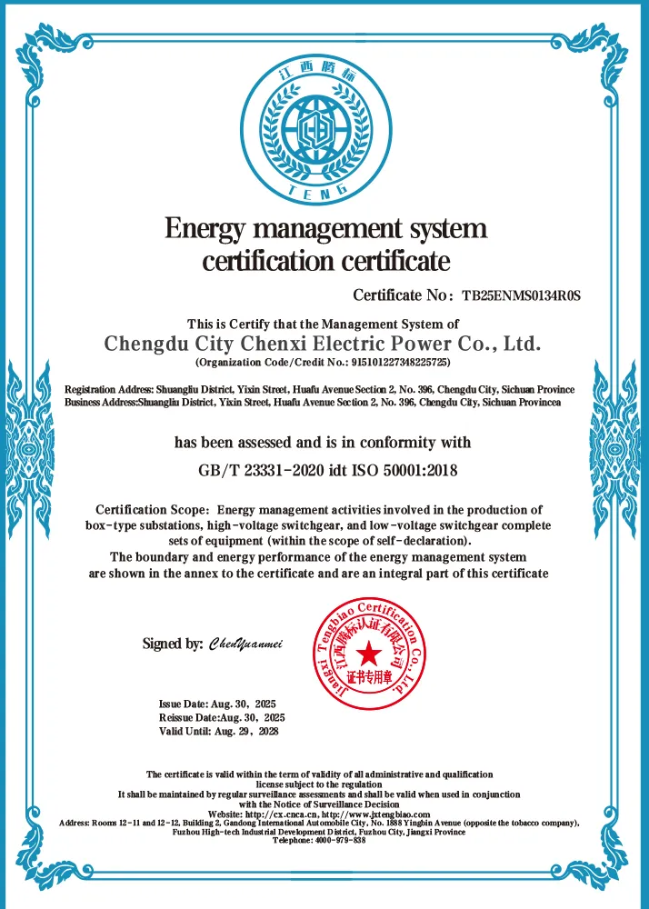 ООО Чэнду Чэньси Электрик — это высокотехнологичное предприятие, специализирующееся на комплексных высоковольтных распределительных устройствах, интеллектуальных комплектных трансформаторных подстанциях, комплектных низковольтных распределительных устройствах, силовых трансформаторах, а также продуктах в области электроавтоматики и цифровых интеллектуальных терминалов. Компания интегрирует научные исследования, производство, сбыт и сервис в единую систему. В её структуре сосредоточены полные производственные цепочки, включая разработку электротехнических технологий, производство, монтаж и наладку, продажи и сбыт электроэнергии, эксплуатационно-техническое обслуживание, строительство и эксплуатацию зарядных станций. Деятельность компании охватывает такие области, как интеллектуальные энергосистемы, промышленность и горнодобывающая отрасль, нефтяная промышленность, водное хозяйство, химическая промышленность, строительство городских и сельских электрических сетей, недвижимость и другие.