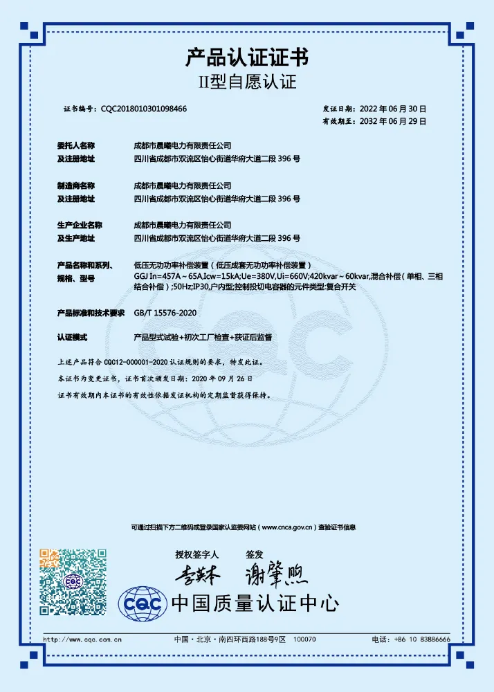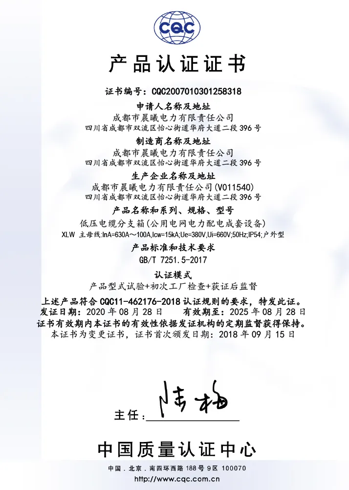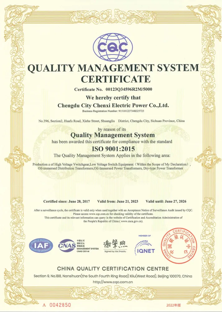 За более чем двадцатилетний период развития вся продукция компании была разработана и изготовлена в строгом соответствии с национальными стандартами GB и международным стандартом IEC, обеспечивая безопасное, надежное и стабильное качество. Компания одной из первых прошла сертификацию систем менеджмента качества, экологического менеджмента, профессионального здоровья и безопасности, а также энергоменеджмента. Вся продукция получила сертификаты CCC и CQC от авторитетного Китайского центра сертификации качества, а также отчеты о типовых испытаниях серийной продукции силовых трансформаторов и сертификаты соответствующих органов. Компания обладает «Сертификатом подрядчика второго уровня в области специализированных работ по передаче и распределению электроэнергии», «Лицензией второго уровня на установку, ремонт и испытания электрооборудования», «Разрешением на безопасное производство» и лицензией на реализацию электроэнергии.